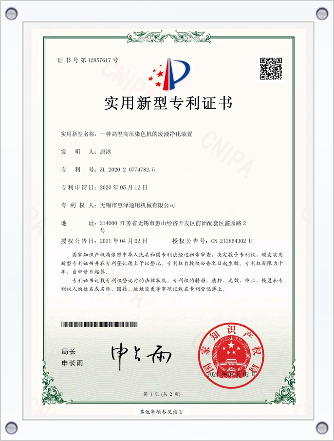 一種高溫高壓染色機的廢液凈化裝置專利